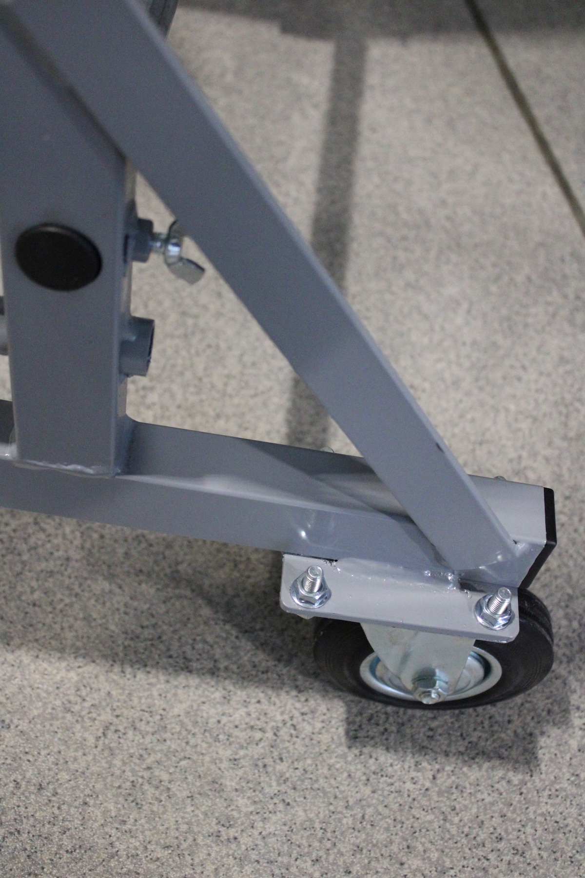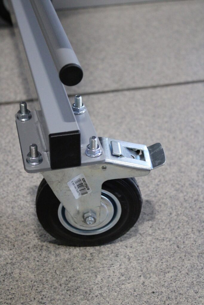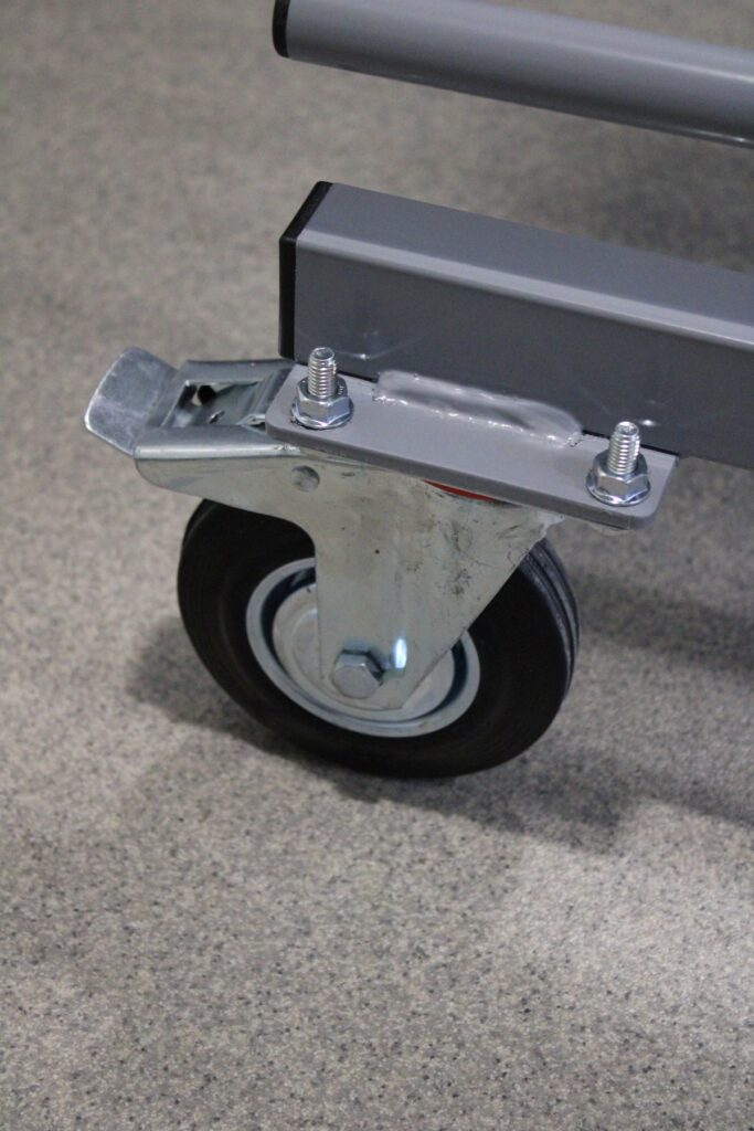 Wózek LITE wykonany z profilu 40 × 30 × 2 mm, rurek fi 21.3 i ocynkowanej belki łączącej fi 26.9 zapewnia udźwig do 300 kg, dzięki czemu doskonale nadaje się do lekkich elementów, takich jak fronty meblowe czy mniejsze komponenty stolarskie.