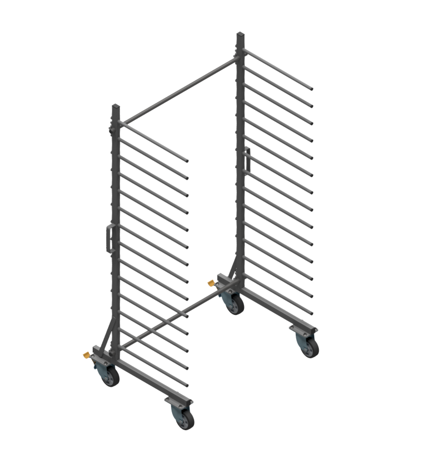 Służy do odkładania pomalowanych lub polakierowanych elementów, może również służyć jako wózek transportowy lub regał.