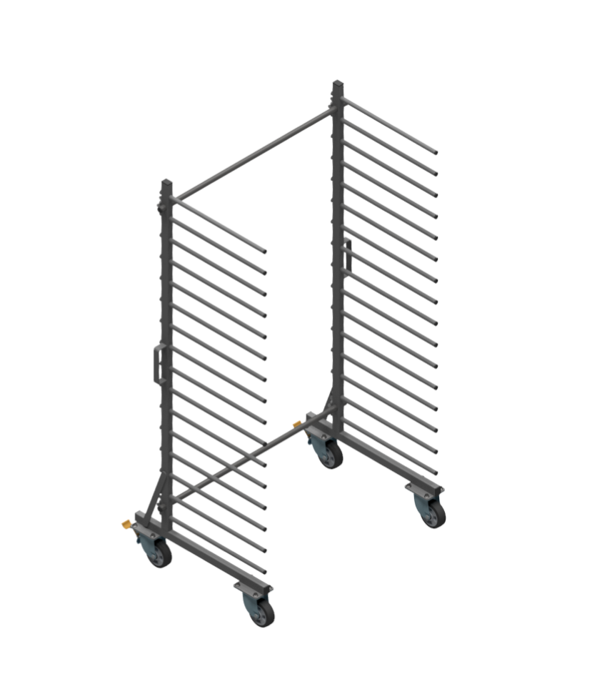 Służy do odkładania pomalowanych lub polakierowanych elementów, może również służyć jako wózek transportowy lub regał.