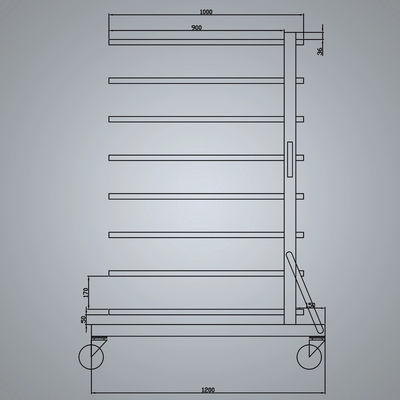 Służy do odkładania pomalowanych lub polakierowanych elementów, może również służyć jako wózek transportowy lub regał.