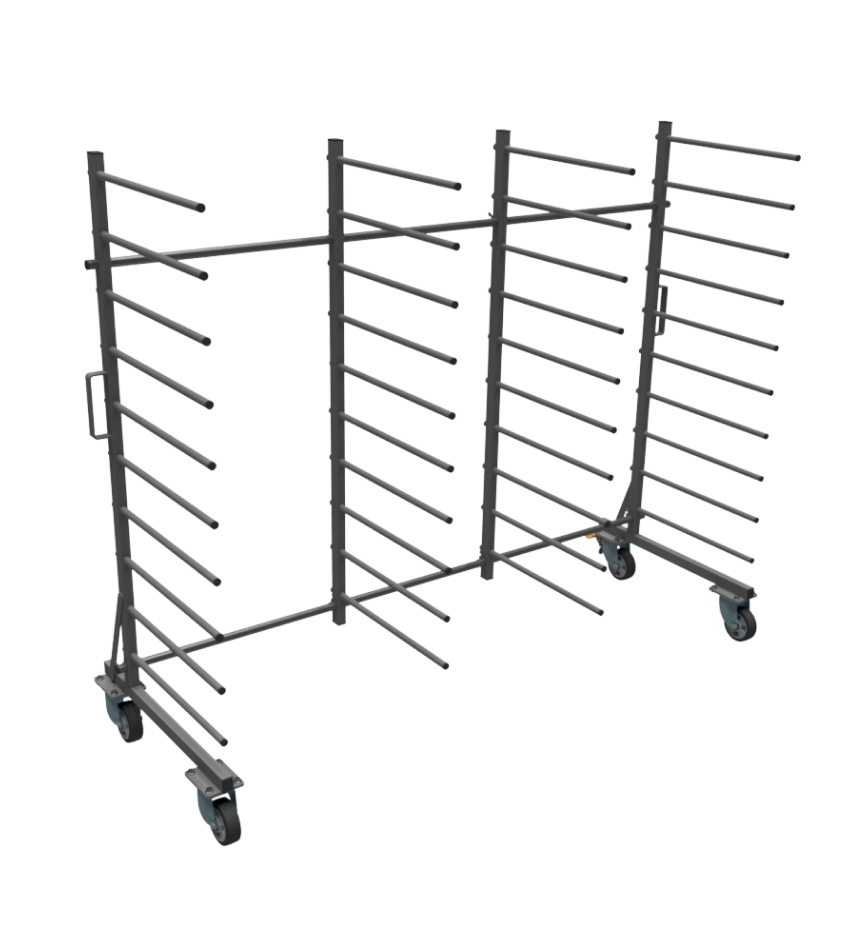 Służy do odkładania pomalowanych lub polakierowanych elementów, może również służyć jako wózek transportowy lub regał.