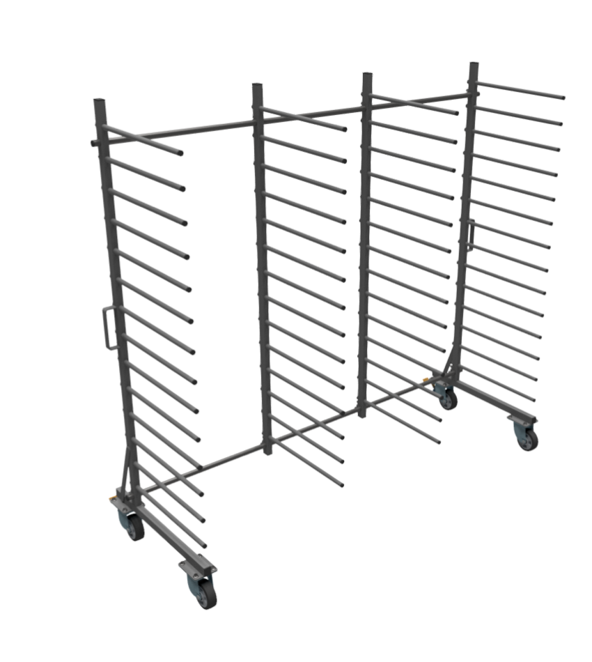 Służy do odkładania pomalowanych lub polakierowanych elementów, może również służyć jako wózek transportowy lub regał.